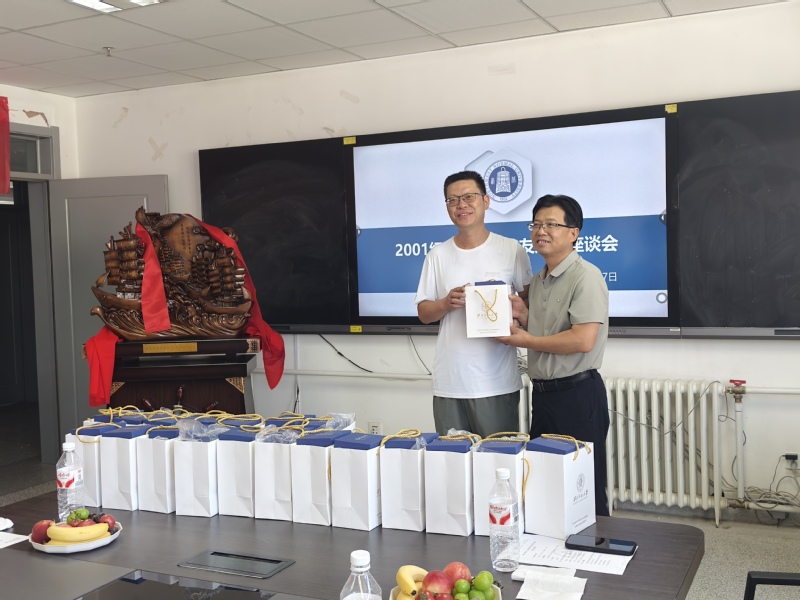 校友们深情回忆求学岁月,分享事业发展的点滴收获,流露着对母校的感恩之情。校友代表狄魁发言,特别感谢母校的悉心栽培,以及同窗挚友的真诚相伴,并送上美好祝愿:“愿母校桃李满天下,再创新辉煌!愿师生情谊永驻,同窗之谊长存!”座谈会上,校友们收到学校校友会提供的文创纪念品,感受到母校温暖的祝福。