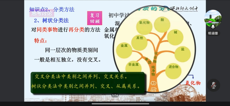 报告中,杨老师以“学科观念建构”为导向,对人教版高中化学必修一《物质的分类与转化》第一课进行了系统而深入的教学实践。从内容解读、学情分析,到教学目标设计与教学流程展开,始终紧扣“分类思想是一种科学研究方法”这一核心线索,呈现了一堂观念引领、贴近生活的化学课。