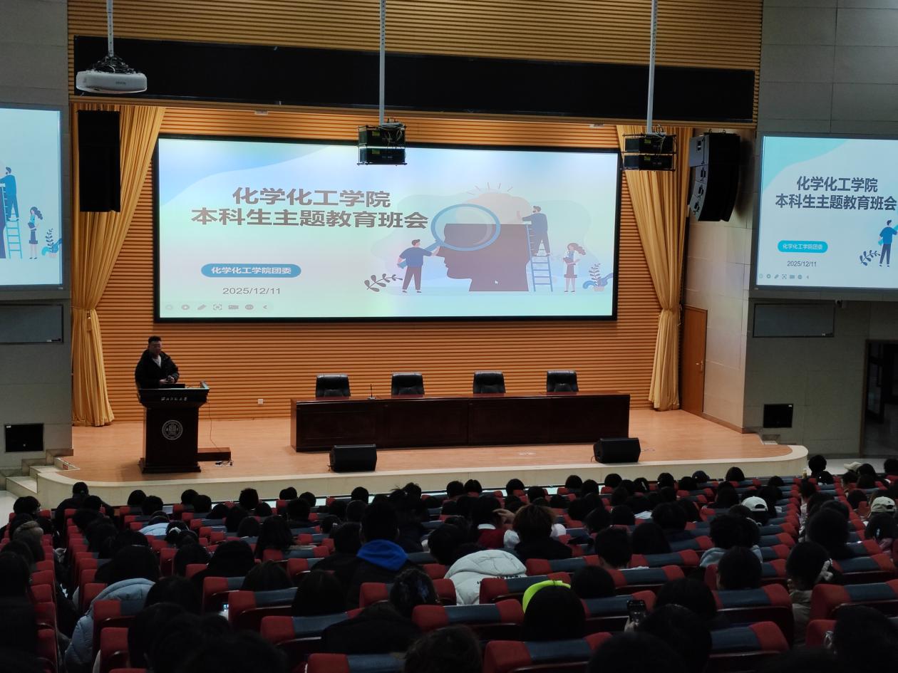 为全面贯彻落实学校安全稳定工作要求,深化主题教育成效,进一步加强学风建设与校园安全管理,2025年12月5日,化学化工学院组织各本科生班级召开专题主题教育班会。班会围绕“书香校园”建设、校园安全纪律、诚信教育等核心内容展开,由辅导员深入班级进行讲解,确保教育覆盖全员、要求落实到位。